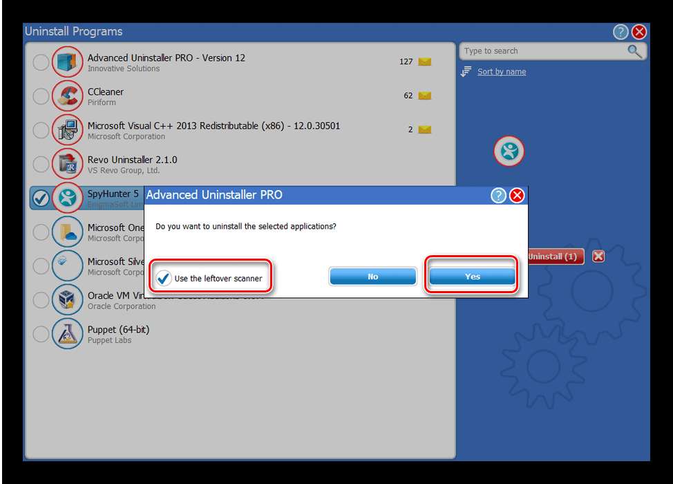 Uninstall SpyHunter 5/4 using Uninstaller software