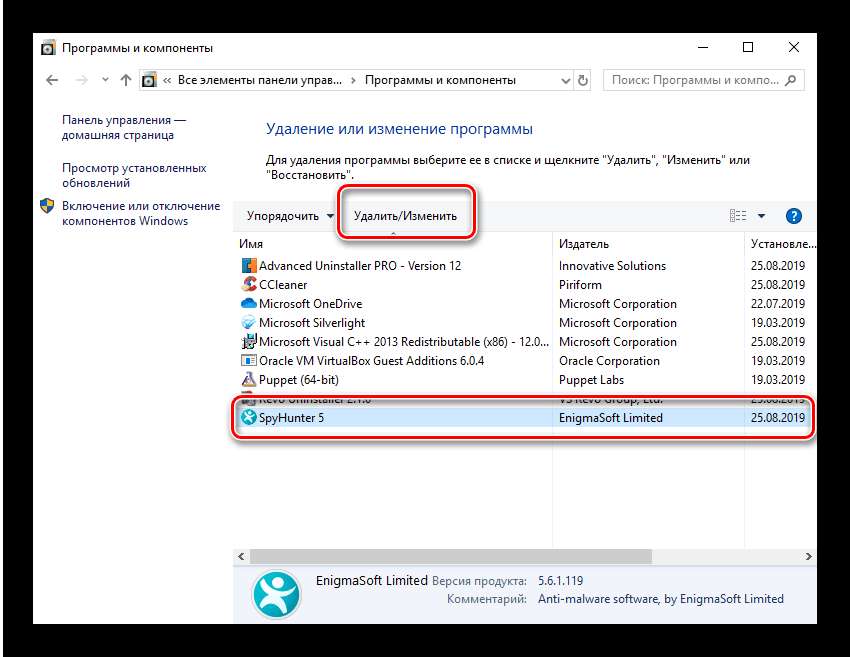 Также для удаления СпайХантер возможно обойтись без использования постороннего ПО – в арсенале ОС находятся инструменты для деинсталляции как программки, так и чистки реестра от мусорной инфы.