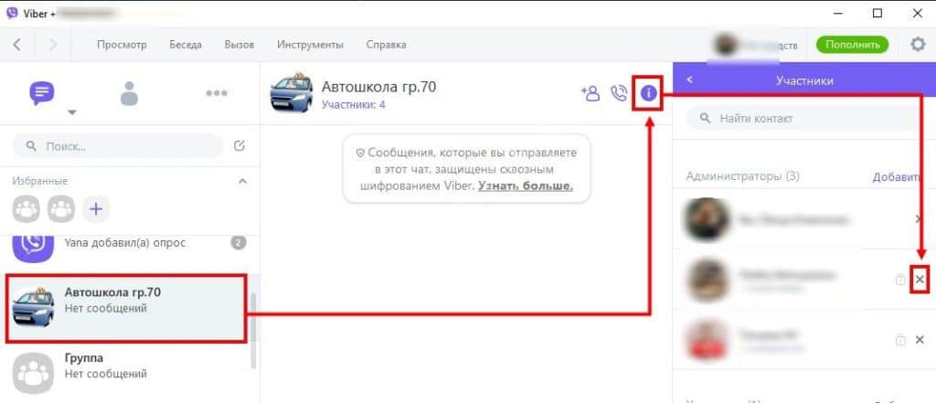 В таком случае важно знать, как убрать из группы в Вайбере человека, если его участие больше не желательно. Алгоритм действий будет иметь следующий вид:
