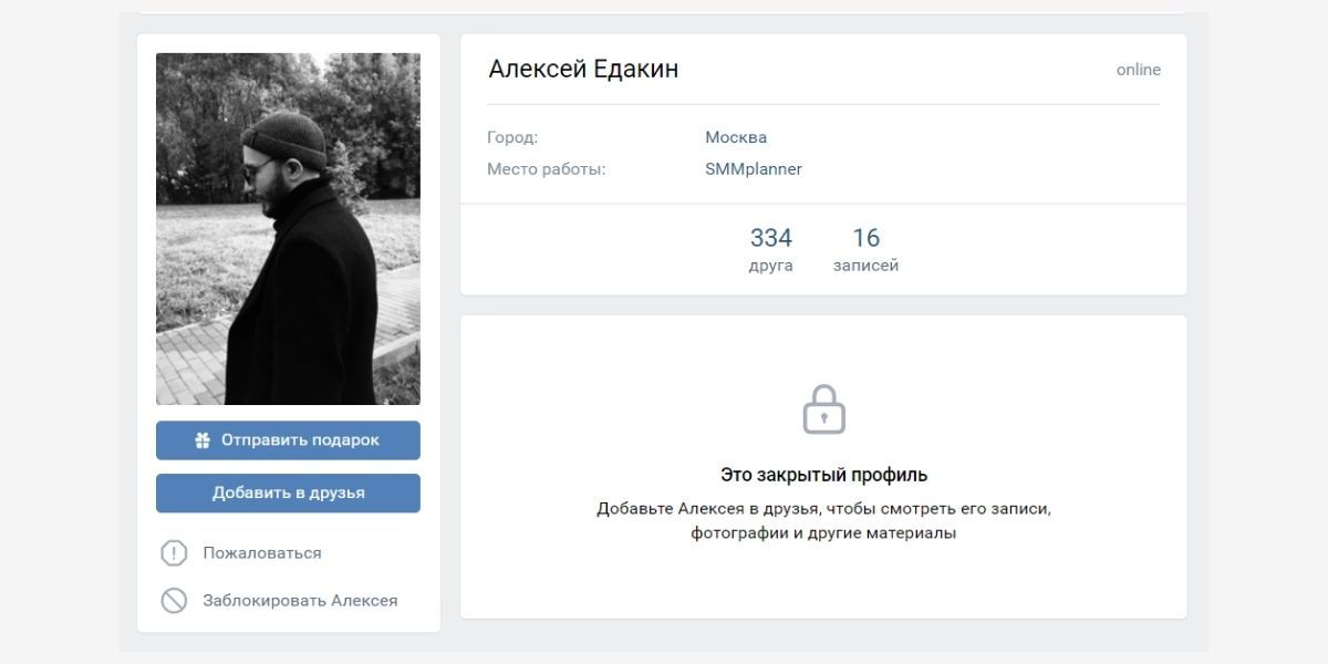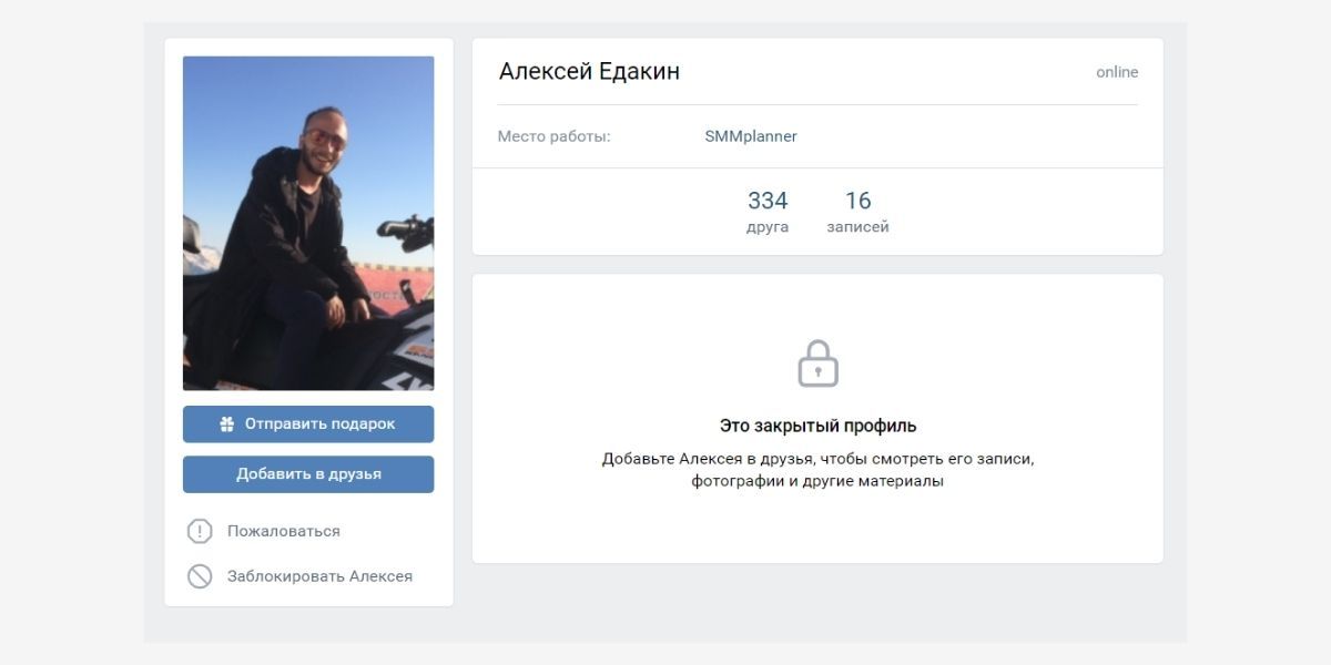 Так будет выглядеть страница, если вы согласитесь не закрывать профиль, а лишь ограничить некоторые разделы