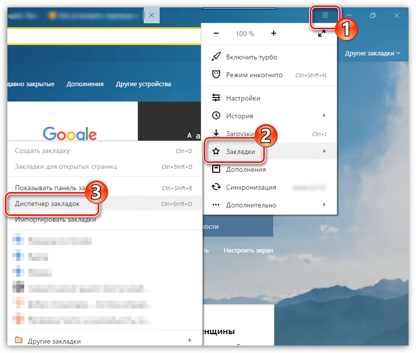 Если говорить о расположении закладок в самом браузере, то для них отведен отдельный раздел. Перейти к нему можно следующим образом: