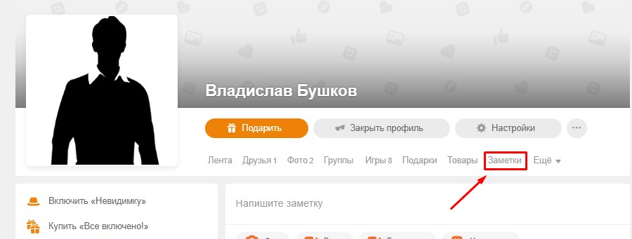 Также вы можете публиковать заметки на главную страницу профиля, которая сообщит друзьям и гостям о важных новостях, вашем мировоззрении и мнениях о различных происшествиях.