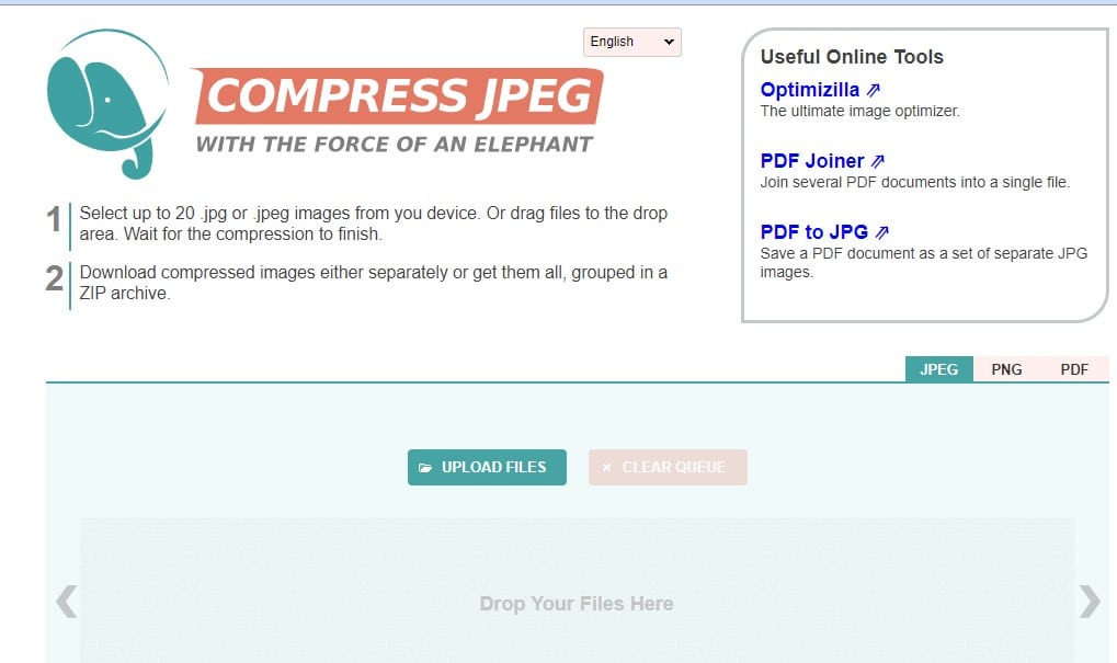 Compress JPEG может быть лучшим сайтом, когда речь идет о сжатии изображений. Вы не поверите, но сайт позволяет пользователям выбирать до 20 типов файлов .jpg или .jpeg. Сжимает изображения без ущерба для качества. Пользовательский интерфейс веб-инструмента очень чистый и простой.