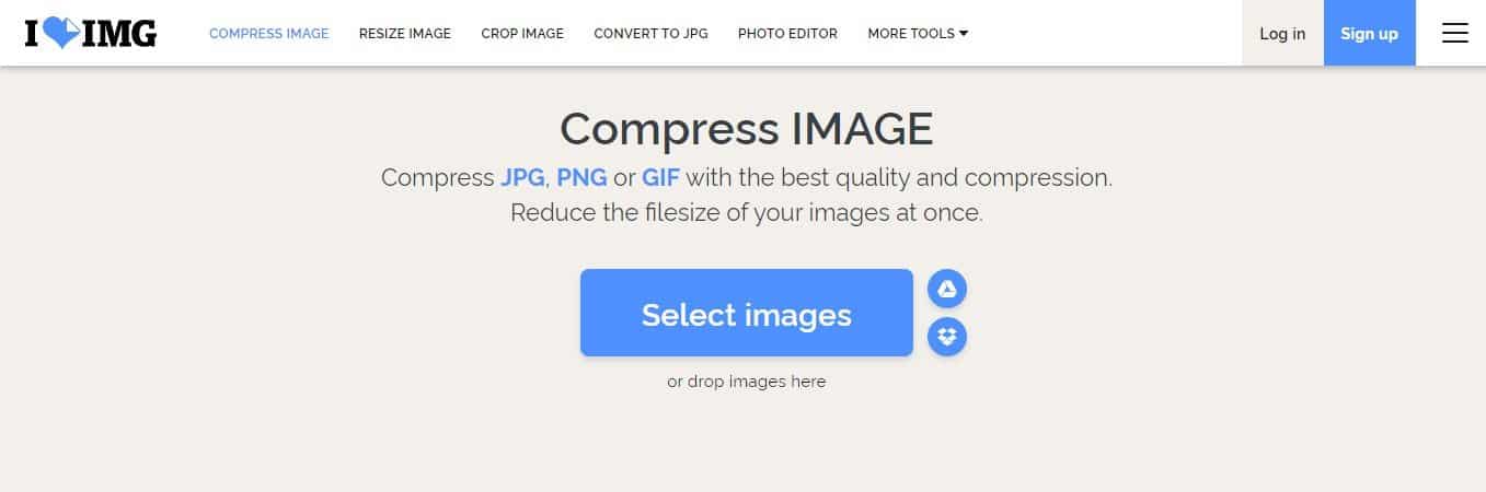 Если вы ищете веб-компрессор изображений для сжатия изображений JPG, PNG и GIF, то Iloveimg может стать для вас подходящим выбором. Сайт уменьшает размер файла ваших изображений, не влияя на качество исходного изображения. Помимо сжатия изображений, Iloveimg также предлагает некоторые другие функции, связанные с изображениями, такие как изменение размера изображения, обрезка изображения, параметры преобразования изображения и т. д. Он также имеет фоторедактор, который удовлетворяет основные потребности редактирования фотографий.