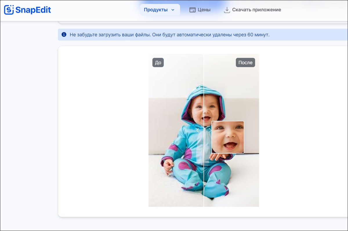 SnapEdit кроме улучшения фотопортрета позволяет увеличивать изображение без потери качества. Доступны версии для Андроид и Айфон. Для проверки отдельных участков снимка реализована оригинальная лупа, которая показывает на первоначальном размере, как будет выглядеть увеличенный вариант.
