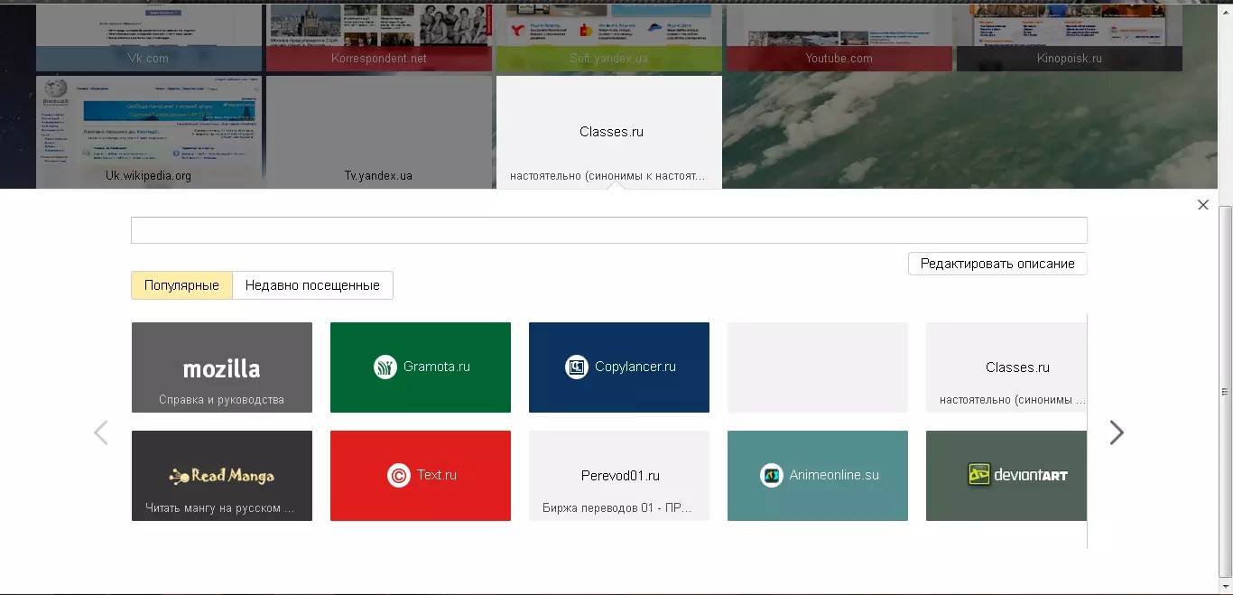 Весомый вклад в эту популярность внесла экспресс-панель, которая даёт возможность пользователям получать доступ к любимым ресурсам и ресурсам в один клик мышки, не вводя длинные адреса сайтов.
