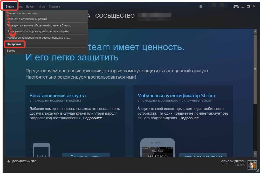 - Выберите раздел Загрузки (Steam, а после Настройки).