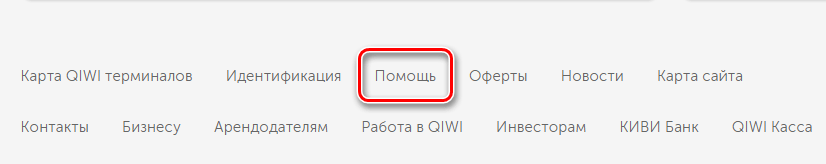 - На главной странице платежной системы нужно найти кнопку «Помощь», которая находится внизу.