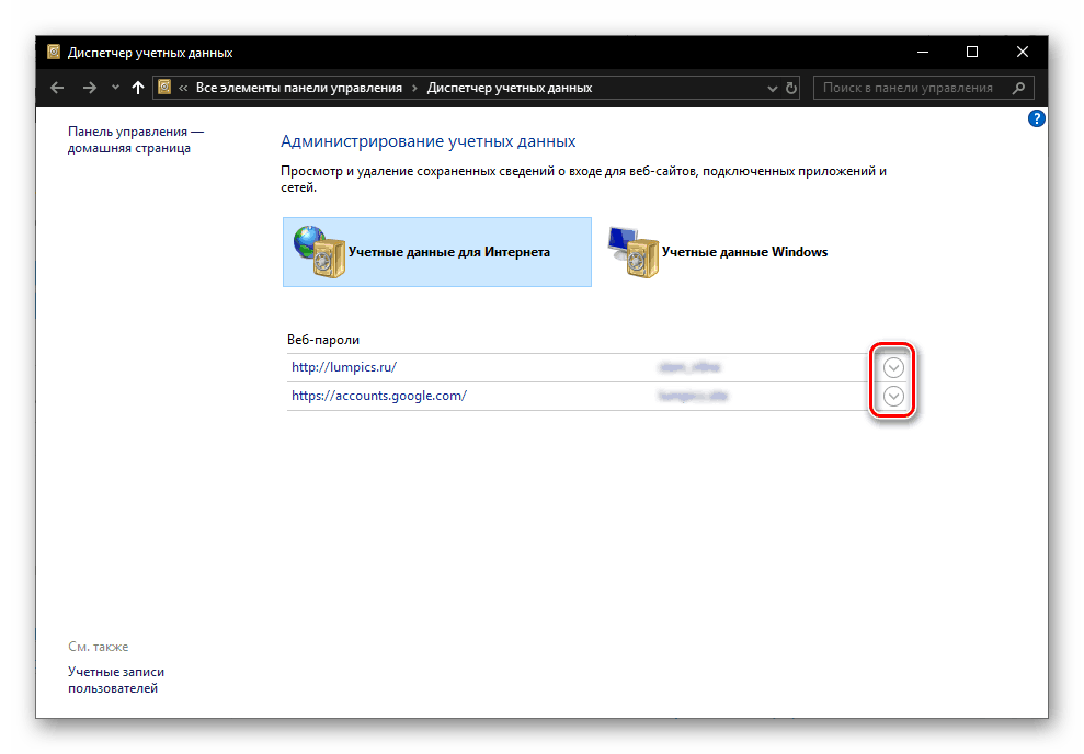 Выделяется на данном фоне только стандартный для всех версий Windows (за исключением последней на сегодняшний день «десятки») Internet Explorer – сохраняемые в нем пароли находятся не в самой программе, а в отдельном разделе операционной системы. О том, как их посмотреть, мы тоже писали ранее.