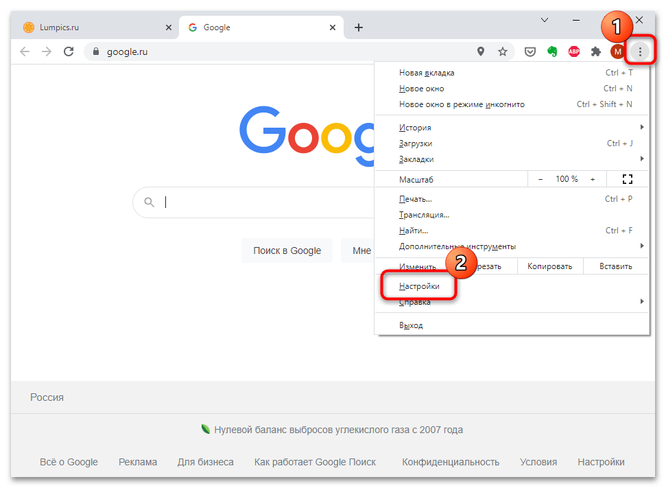 - Щелкните по иконке в виде трех вертикальных точек, чтобы перейти в главное меню, и вызовите «Настройки».