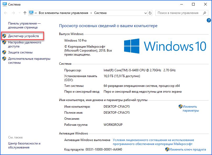 - зайти в свойства компьютера, а затем на левой панели выбрать “Диспетчер устройств”;