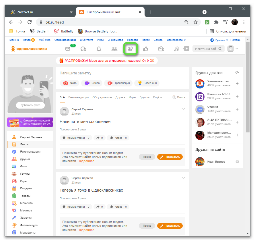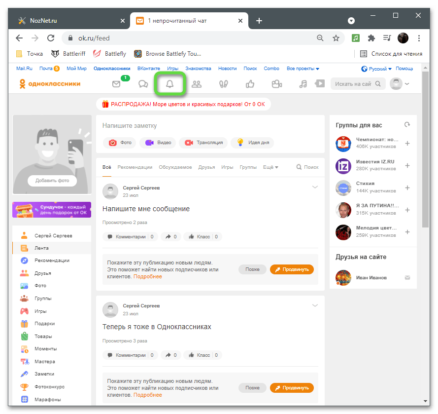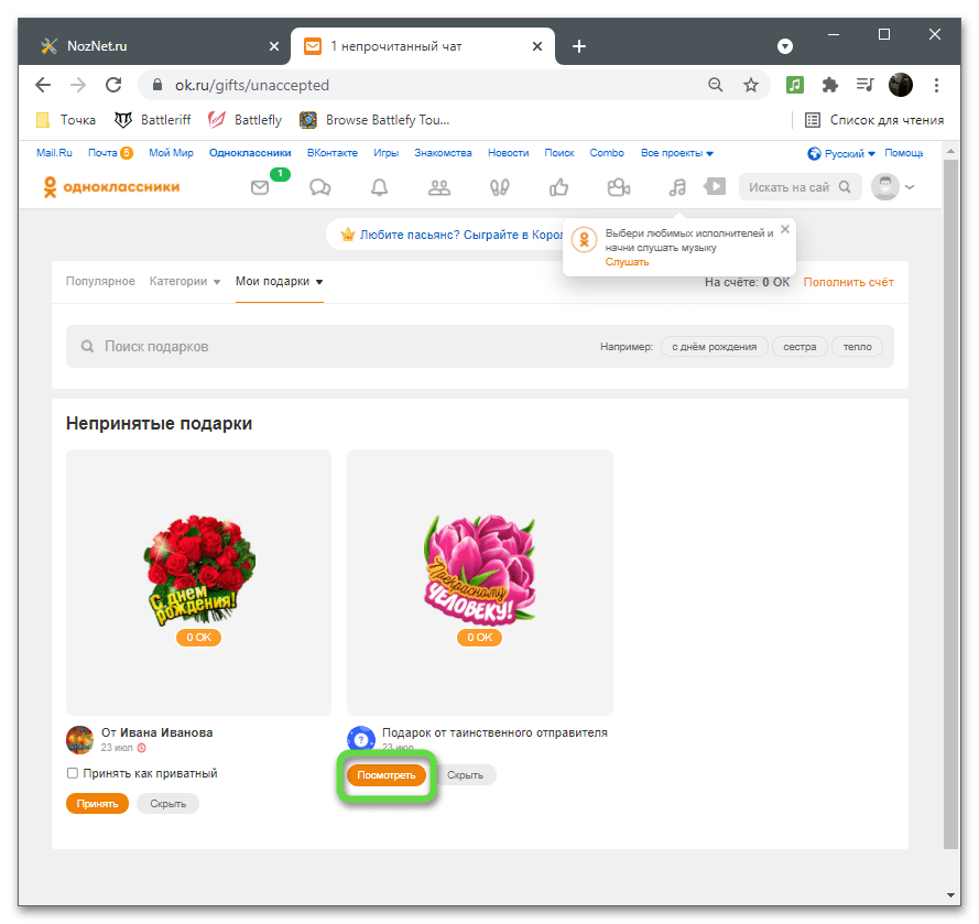 Сначала поговорим о двух доступных методах отгадывания тайного отправителя в Одноклассниках в веб-версии данной социальной сети. Обычно ее открывают в браузере на компьютере или ноутбуке, поэтому иллюстрации в инструкциях ниже будут соответствующими.