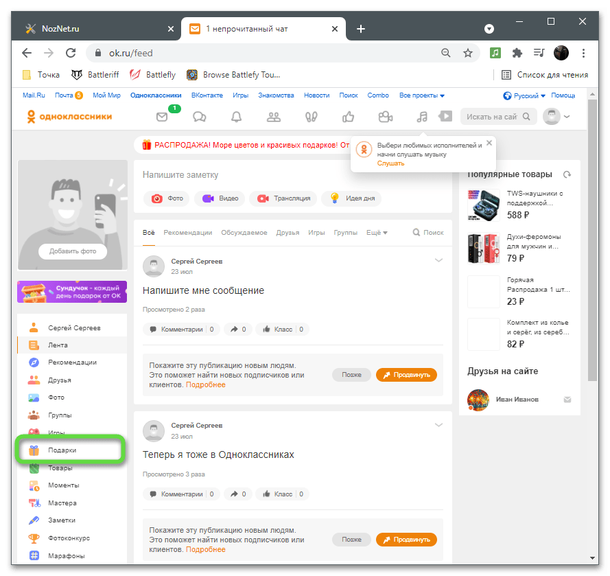 Чтобы сделать подарок своему другу в Одноклассниках, можно применить несколько способов. Первый из них:
