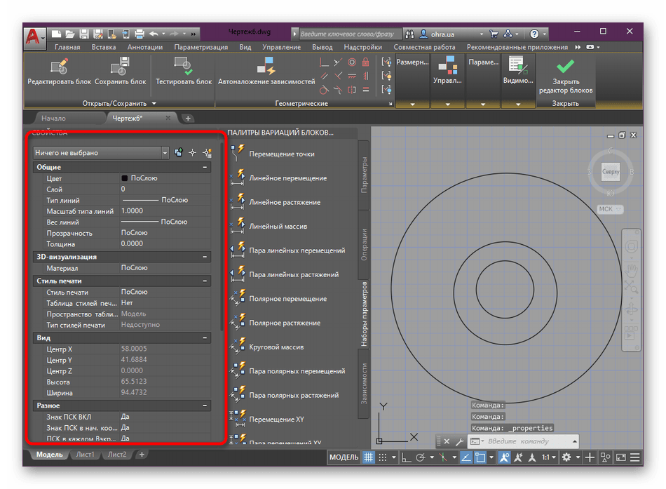 - Ничего на своём чертеже выделять не стоит. Просто следует открыть палитру «Свойства». Или воспользоваться для этого комбинацией клавиш Ctrl+1.