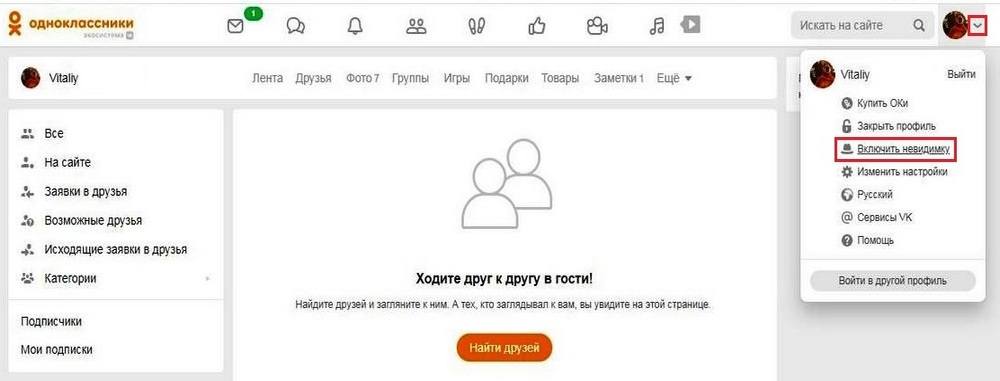 - Как подключить невидимку в Одноклассниках (как стать невидимым);
