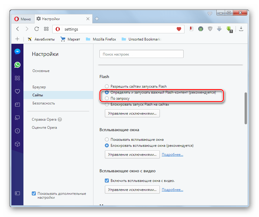 Если же вы желаете включить функцию с ограничениями, то переключатель следует переставить в позицию «Определять и запускать важный Flash-контент (рекомендуется)» или «По запросу».