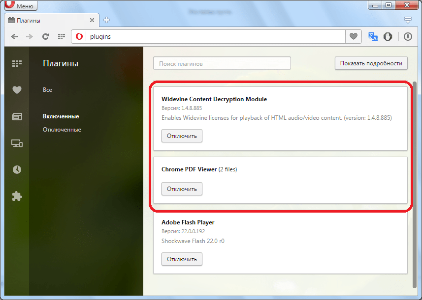 Просмотреть доступные плагины в браузере Опера можно следующим образом: