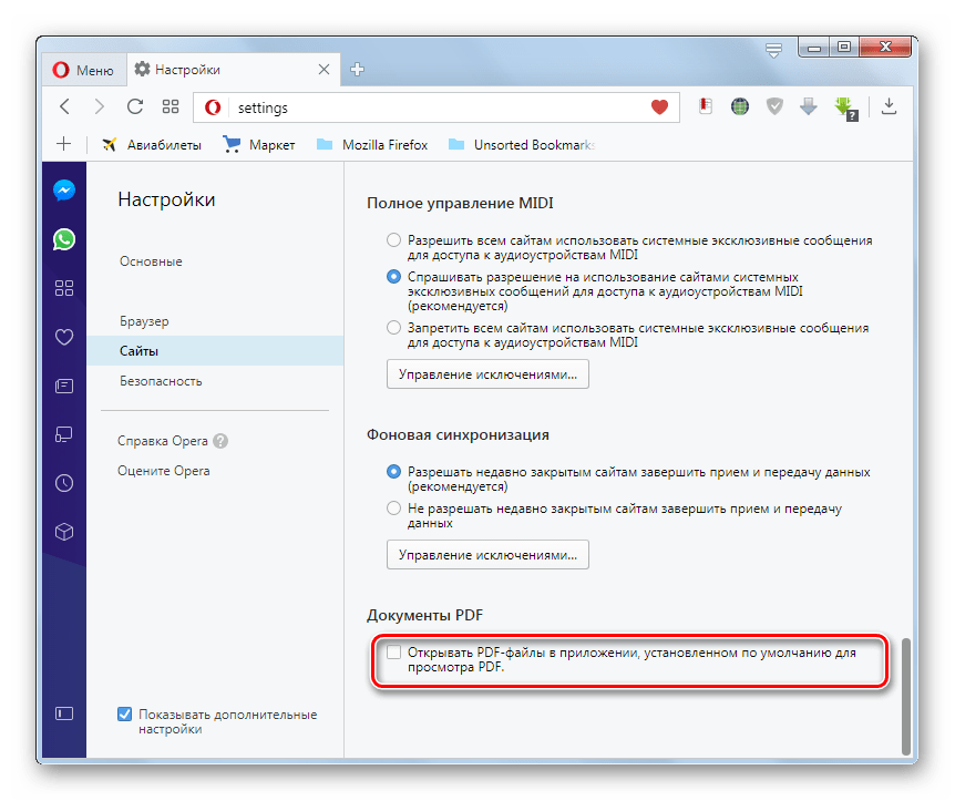 Для активации функции плагина «Chrome PDF» нужно просто убрать указанную выше галочку. Теперь документы PDF, расположенные в интернете, будут открываться через интерфейс Оперы.