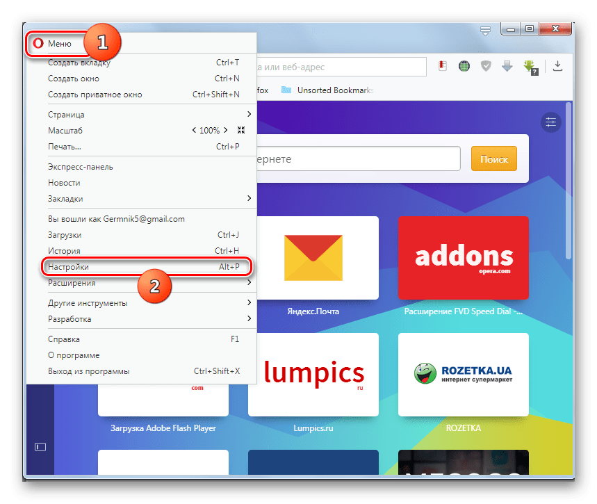- Щелкните «Меню». В открывшемся списке выберите «Настройки». Или просто воспользуйтесь комбинацией Alt+P.