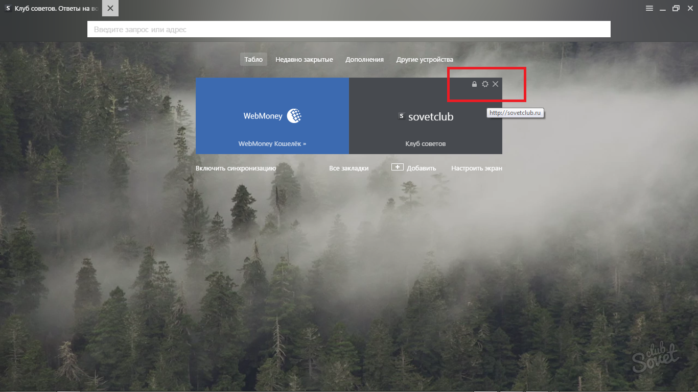 Приветственное табло весьма удобно в использовании и имеет красивый вид. Вы можете менять или удалять ячейки с сайтами в правом углу окошка.