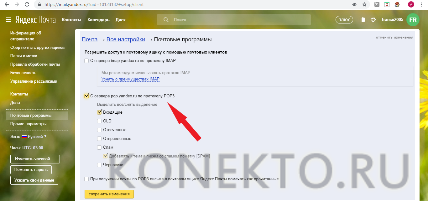 Применение протокола POP3 позволяет скачивать письма почтовым клиентом из тех папок, которые пользователь выберет в «Настройках ящика». Все сообщения окажутся в папке «Входящие», то есть структура почты Яндекс соблюдаться не будет. Разумеется, при необходимости вы можете настроить фильтры, раскладывающие письма по соответствующим папкам, в самой почтовой программе.