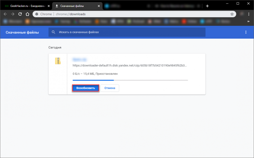 “Можно ли возобновить или продолжить отмененные загрузки в Chrome? Я попытался скачать одну программу, но загрузка почему-то остановилась, а потом и вовсе отменилась. Можно ли возобновить загрузку файла после сбоя?”