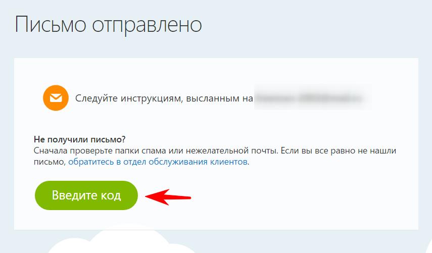 Вам будет выслан специальный проверочный ко по SMS сообщению, как только вы его получили, нужно его указать, для этого нажимаем Введите код. Вас перекинет на форму смены пароля skype.