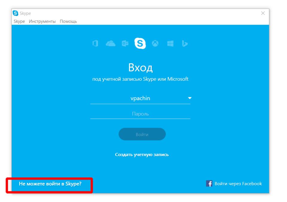 - перейти по ссылочке «Не можете войти в Скайп?»;