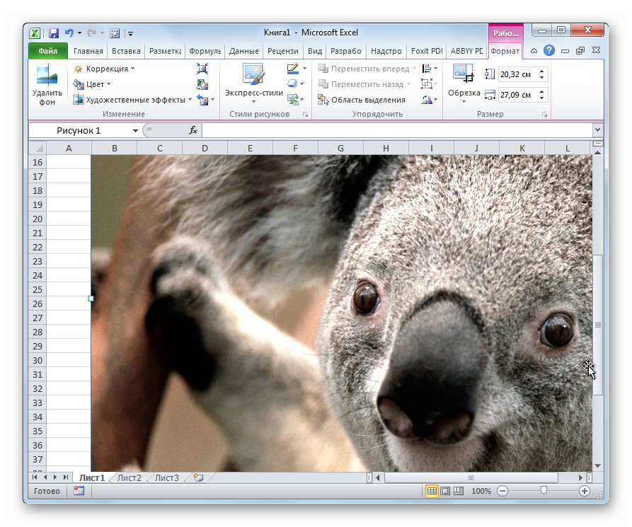 Поговорим о том, как изменить вставленное изображение так, чтобы оно имело подходящие размеры, гармонично смотрящиеся на рабочем листе табличного процессора. Пошаговое руководство выглядит следующим образом: