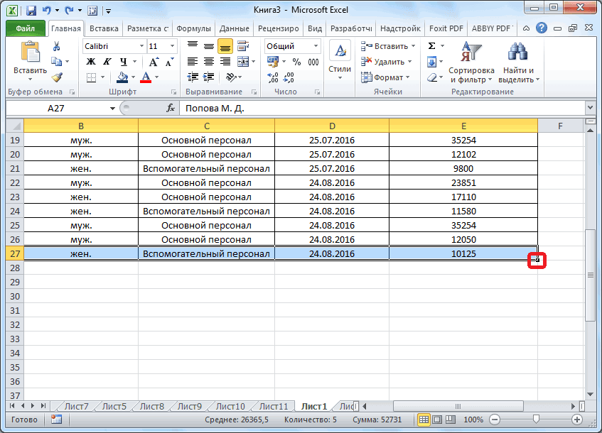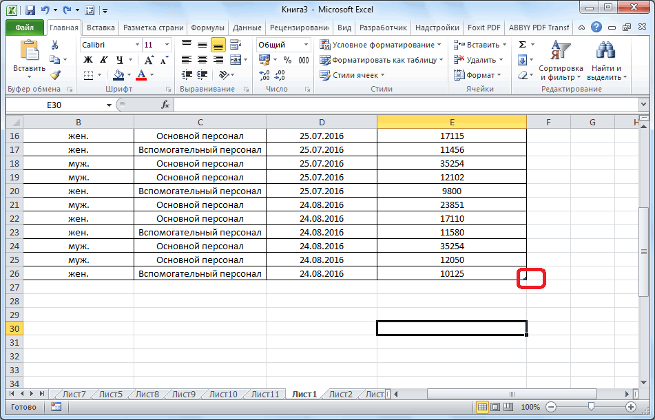 Также вы можете добавить строку между строк простой комбинацией Ctrl+. Всё будет подстроено и подсчитано автоматически; Для добавления строки в конце таблицы вы можете выделить ячейку в этой строке и нажать на клавишу Tab; Вы также можете добавить ещё одну строку, если просто потяните курсором угол. Пример отмечен на скриншоте;
