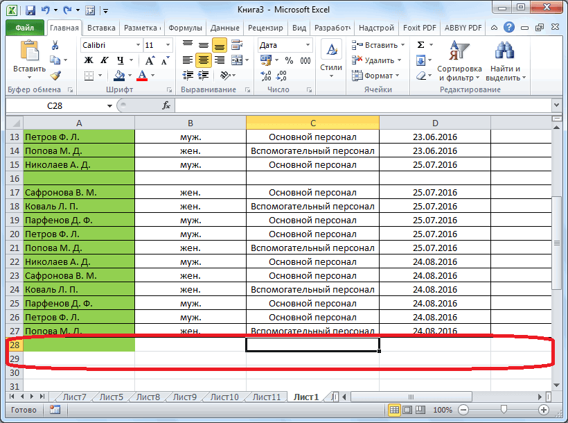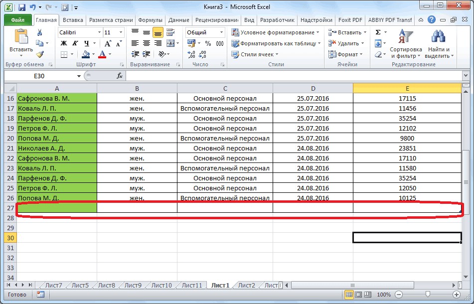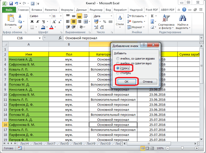 Добавление новой строки в программе Microsoft Excel