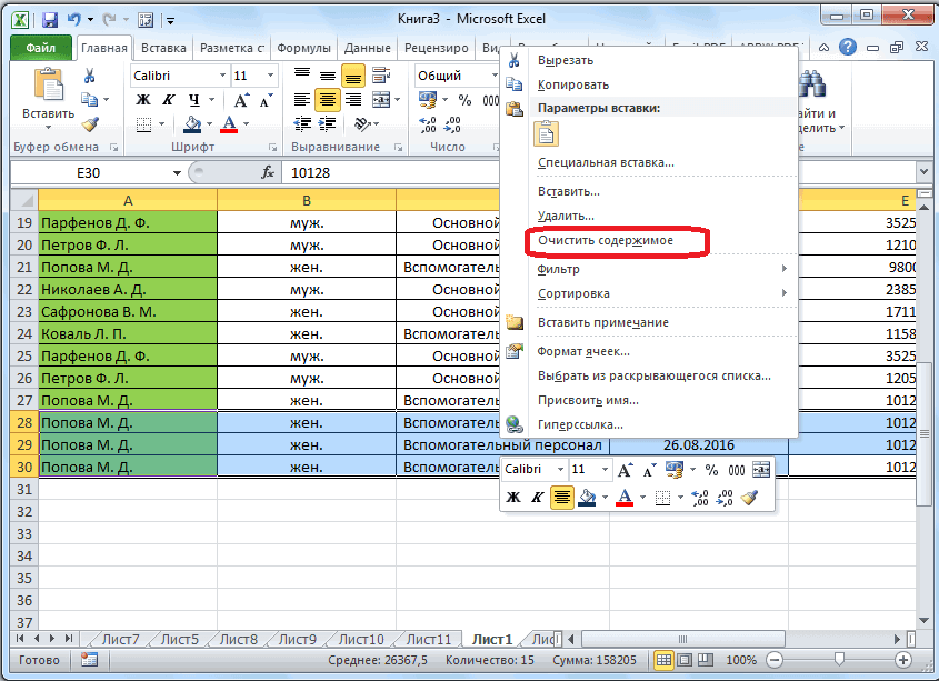 Тяните до тех пор, пока таблица не получит нужные границы. После того, как вы отпустите левую кнопку мыши изменения будут применены. Однако стоит заметить, что в новых строках, которые были созданы подобным образом будет дублироваться контент, расположенный в последней строке оригинальной таблицы. Для того, чтобы убрать его, выделите область с ним и нажмите правой кнопкой мыши. В появившемся контекстном меню выберите вариант «Очистить содержимое». После этого все добавленными вами строки будут очищены от контента, но при этом будут иметь такое же оформление, как и у таблицы.