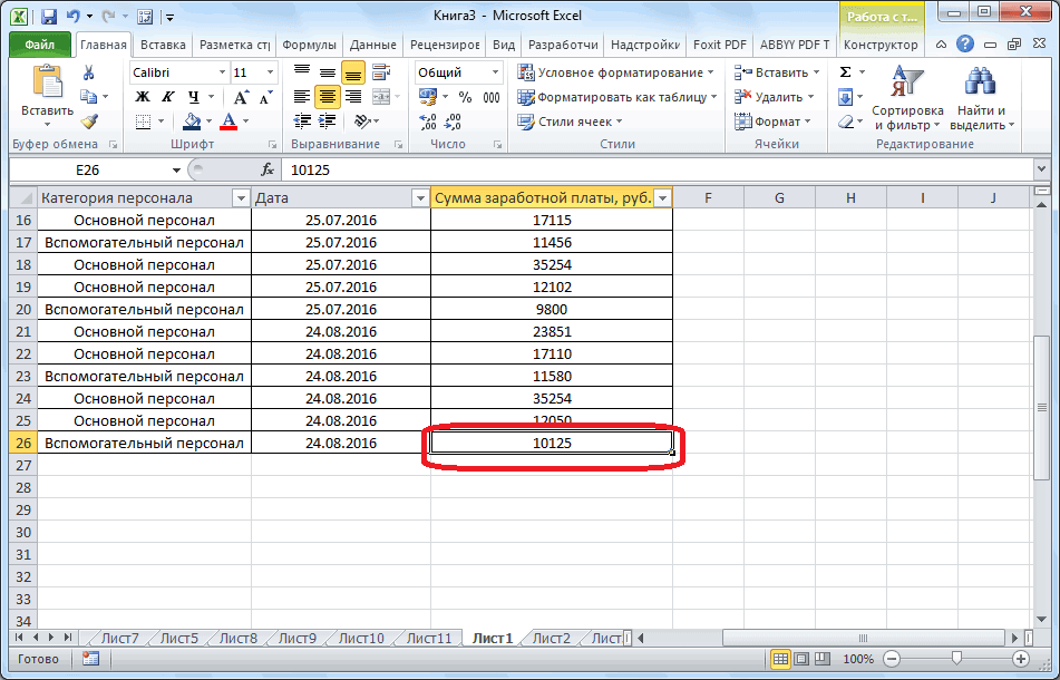 - Для заполнения необходимо активировать ячейку и начать вписывать информацию.