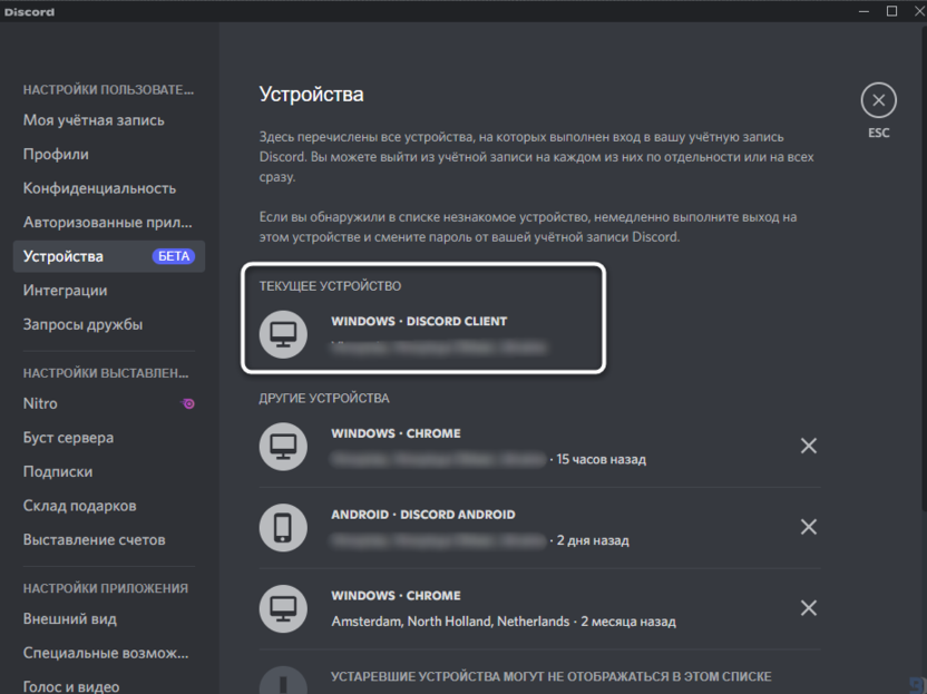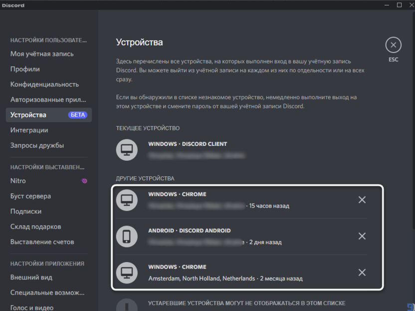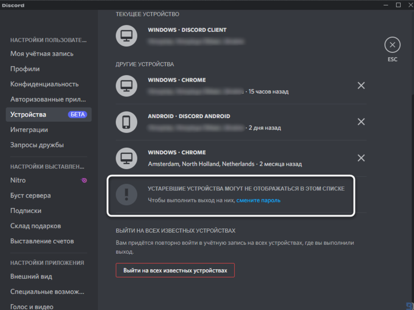 Обратите внимание на то, что пока что Discord ограничен в отображении информации по старым устройствам, что, скорее всего, связано с отсутствием информации в логах до того момента, как эта функция была внедрена