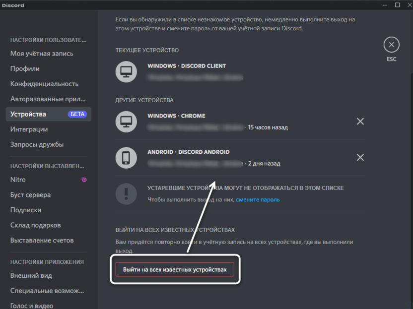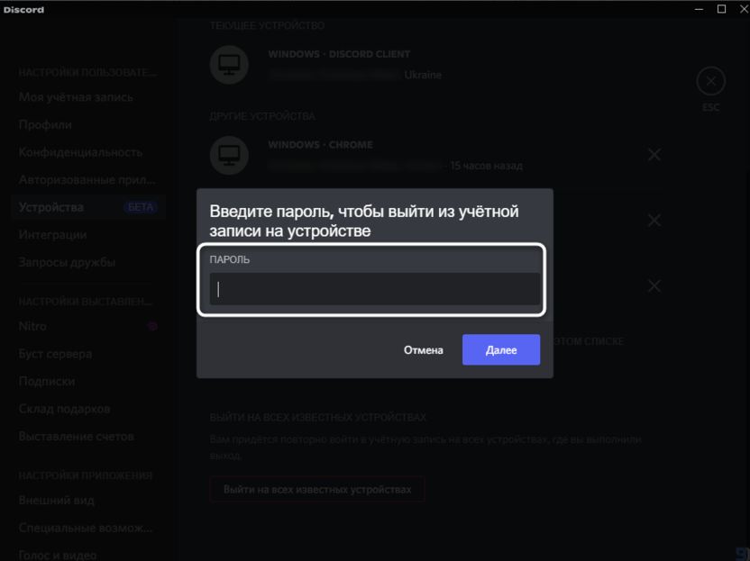 Это приведет к автоматическому выходу со всех авторизаций, которые есть у вашего аккаунта. Учитывайте, что теперь вам придется самому выполнить вход во всех местах, где нужен Discord.