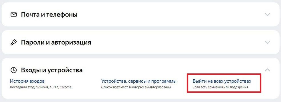 Выходим из аккаунта Яндекс Почты со всех устройств
