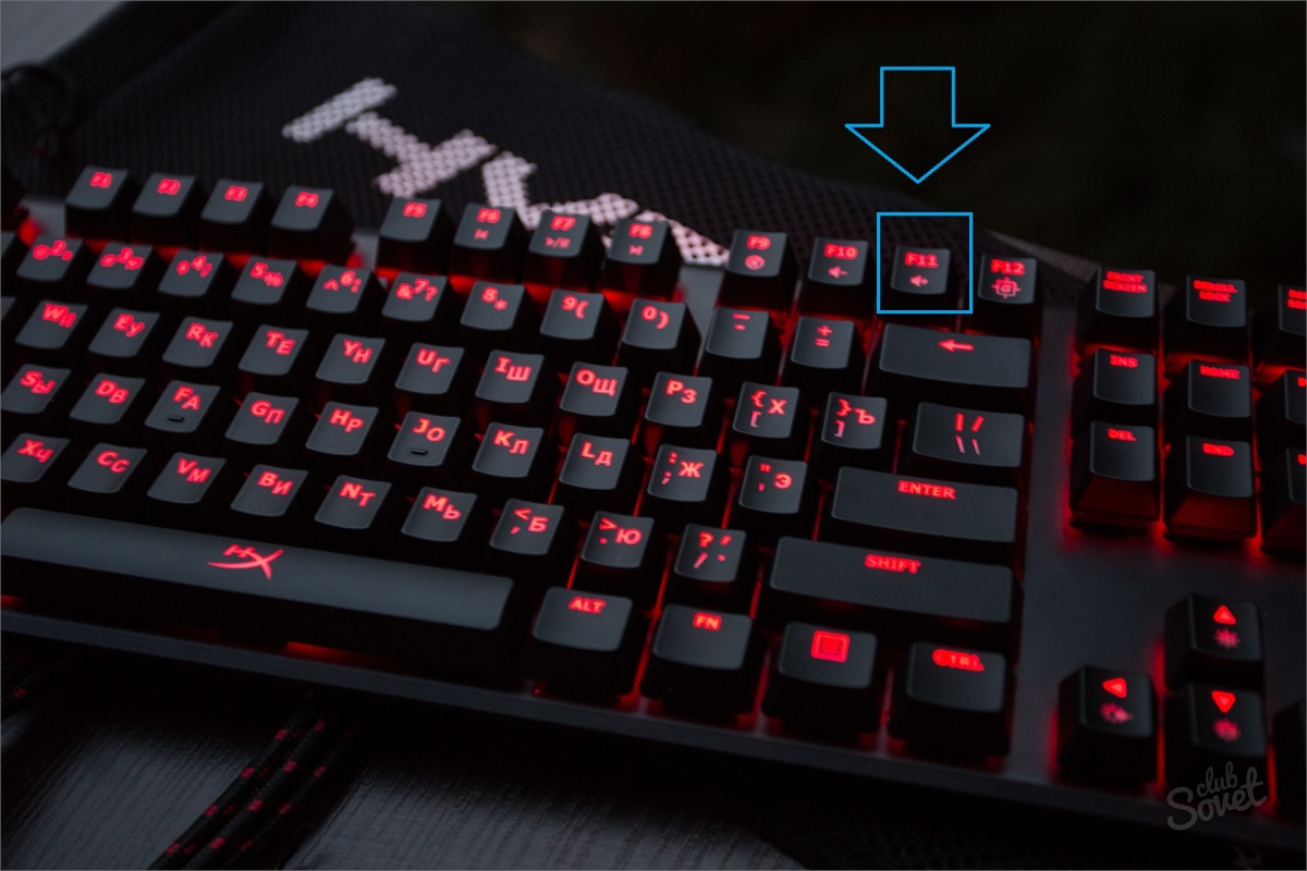 Кнопка «Fn» чаще всего находится в самом нижнем ряду между клавишами Ctrl и Alt. Найдите её, зажмите, и не отпуская, потом жмем по второй клавише – F11.