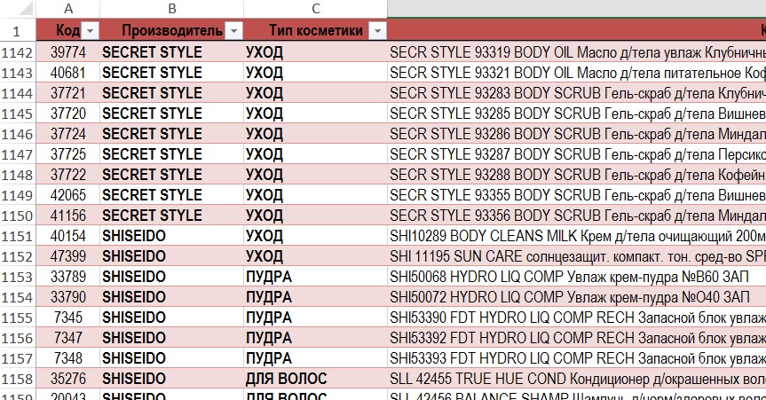 - Наша “умная таблица” готова со встроенными фильтрами и зафиксированной шапкой, которая останется на месте при прокручивании содержимого вверх-вниз.