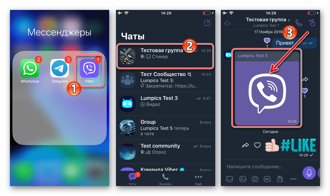 - Открываем Viber на смартфоне и переходим в групповой диалог или личную переписку с пользователем.
