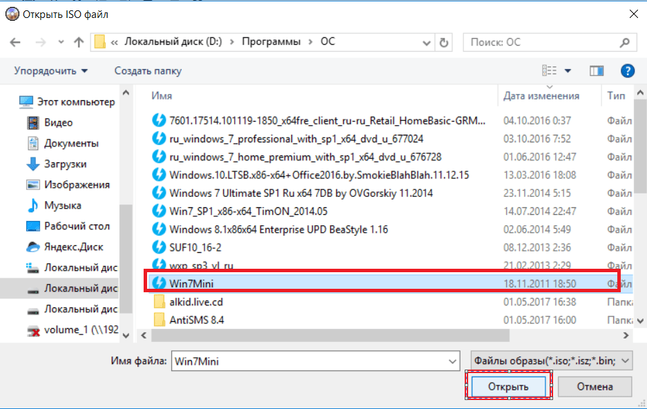 » и укажите путь к файлу с расширением iso, img, mds, mdf.