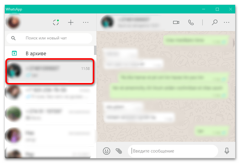 - Откройте мессенджер на компьютере и кликните на чат с человеком, которого следует заблокировать для запрета звонков.