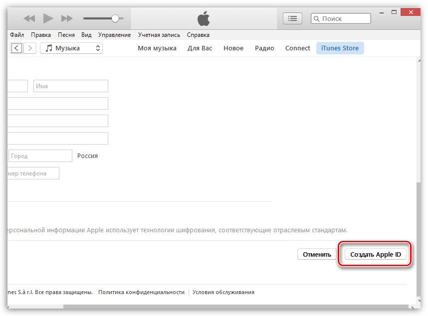 На нашем сайте есть подробная инструкция по созданию Apple ID без ввода данных кредитной карты (ссылка ниже). Создавайте ее прямо сейчас и переходите к следующему шагу.