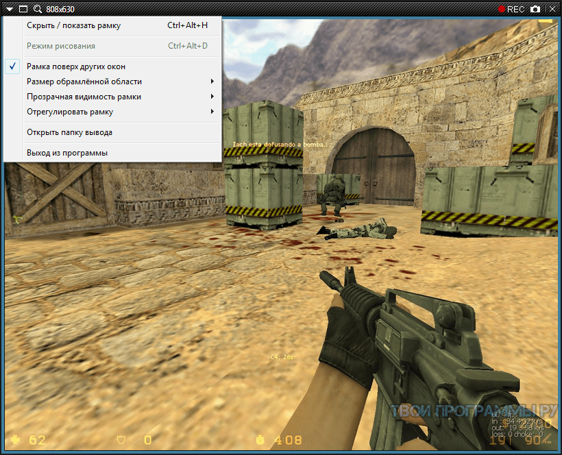 - Запись рабочего стола (с выбором области записи) DirectX / OpenGL;