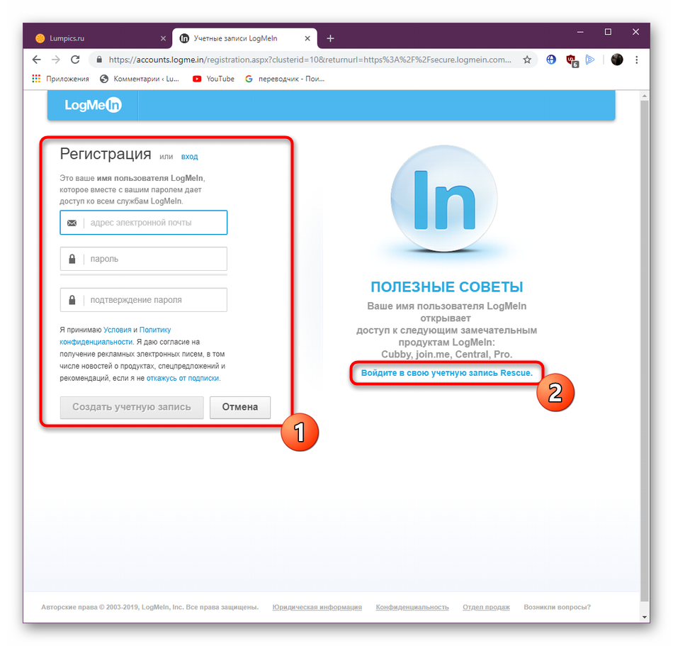 Если вы хотите авторизоваться в сервисе, то перейдите к странице https://www.logmein.com/ru и нажмите кнопку «Вход». Затем впишите электронную почту (логин) и пароль от аккаунта. Для подтверждения нажмите «Вход». Если вы авторизуетесь со своего личного девайса, то поставьте галочку в пункте «Это надежное устройство», чтобы не вводить данные от профиля повторно.