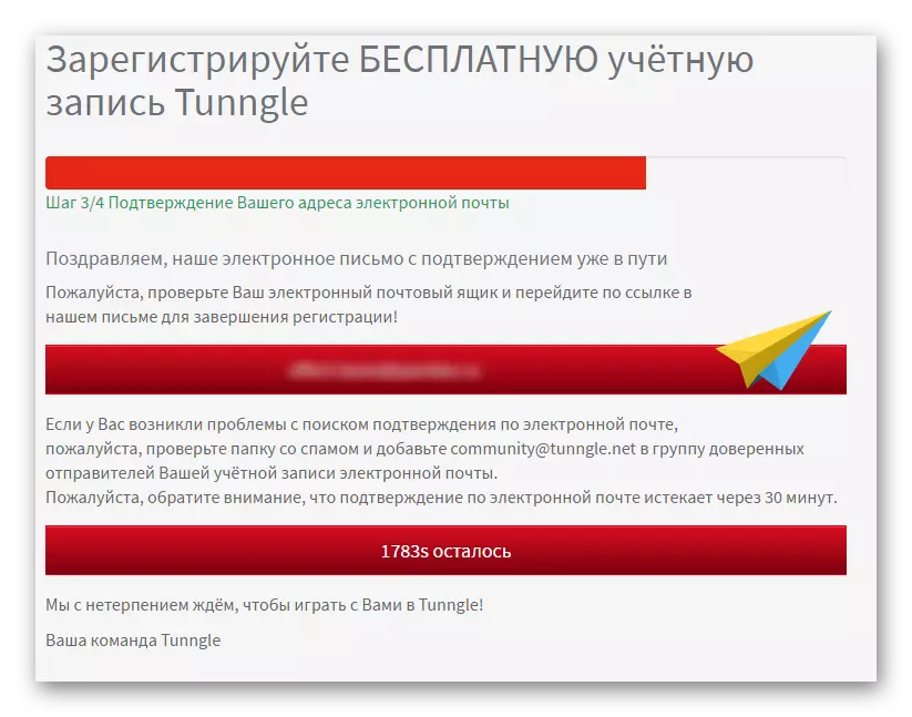 Now the time has come number 3 — you need to confirm the email address. For this, a special letter will come to the mail previously. Confirmation can be made during the specified time — at the bottom of the page you can see the timer.