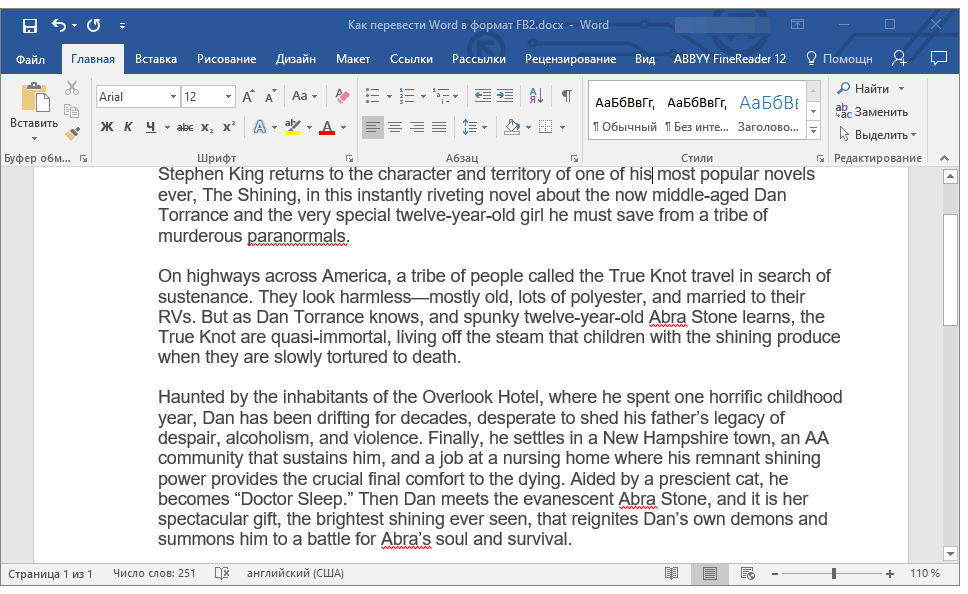 Как видите, текстовый документ в формате FB2 выглядит куда более пригодно для чтения, чем в Ворде, тем более, что открыть этот файл можно и на мобильном устройстве. У того же FBReader есть приложение практически под все настольные и мобильные платформы.