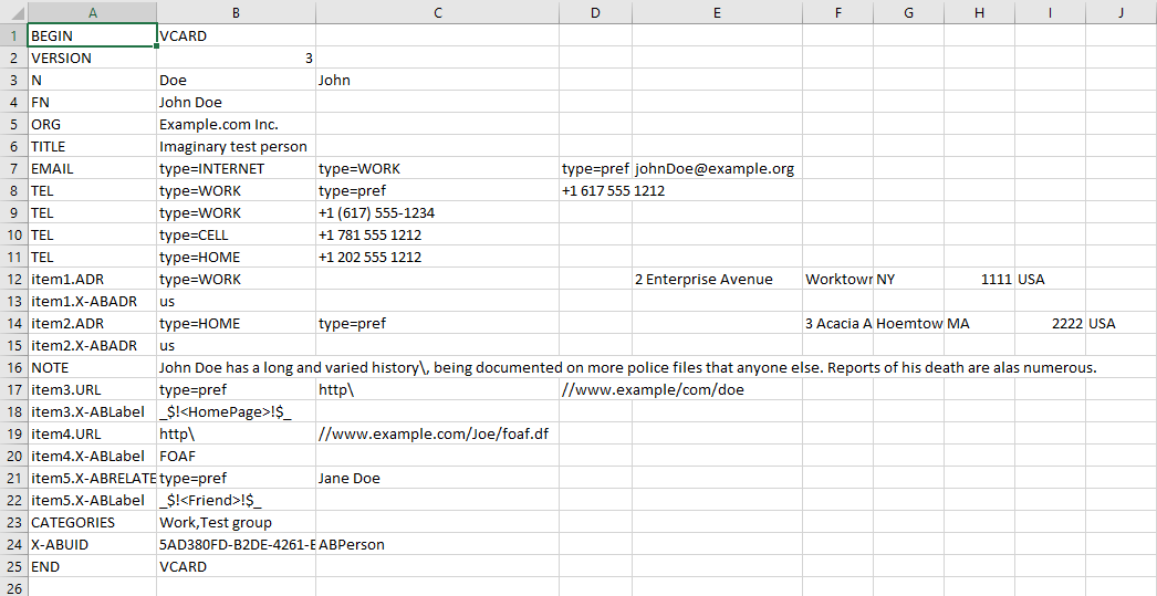 Решение 3. VCard в Excel: попробуйте открыть VCF в Excel