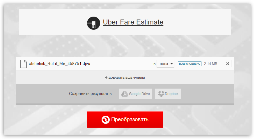 При необходимости, вы можете добавить на страницу сервиса дополнительные DjVu-файлы. Теперь, чтобы приступить к конвертированию, вам потребуется щелкнуть по кнопке «Преобразовать».