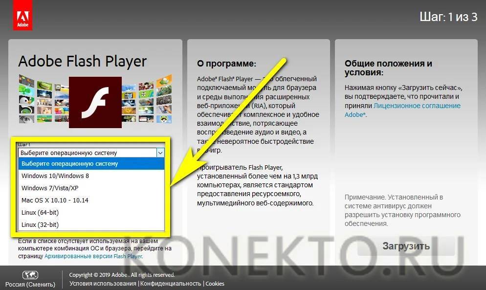 А в нижнем – браузер, для какого должен быть загружен Адобе Флеш Плеер.