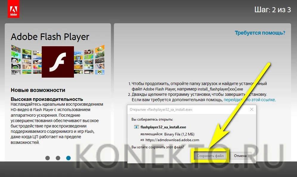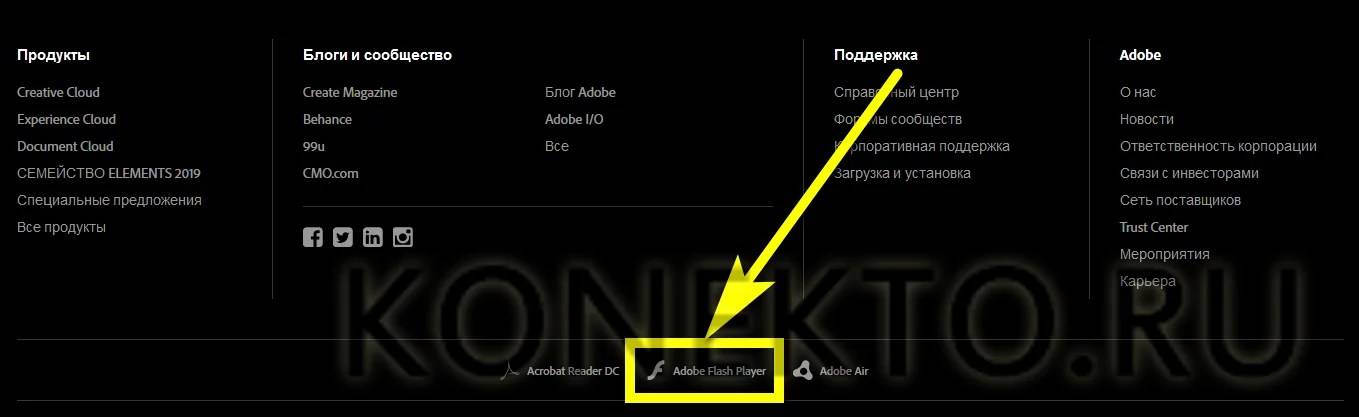 В конце статьи вы найдете ссылку, которая перенаправит вас к официальному сайту разработчика Adobe Flash Player